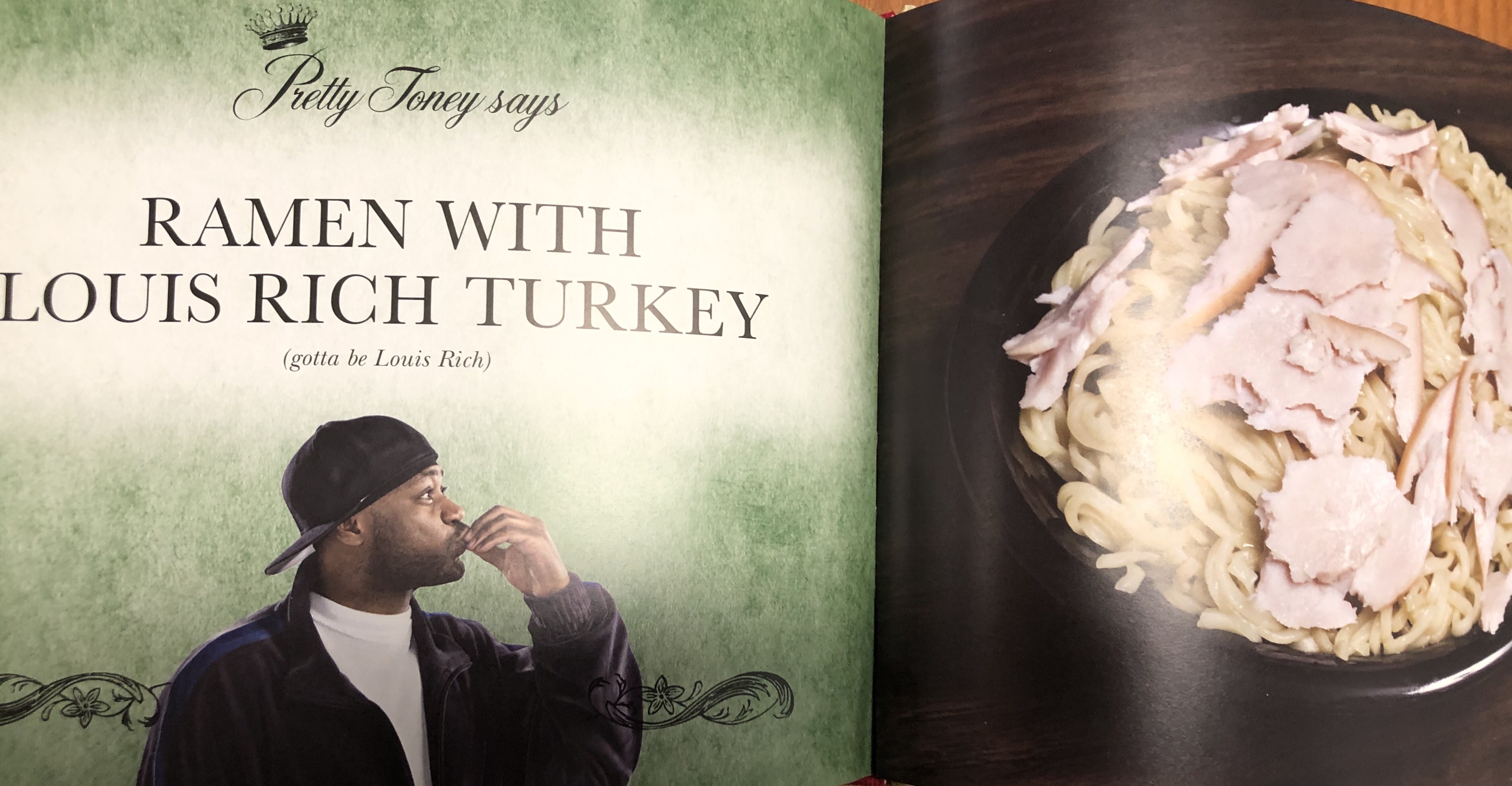 This is literally just four different ways to enjoy Ramen noodles: 1. classic; 2. with Louis Rich turkey (“gotta be Louis Rich”); 3. with cheese; and 4. with roast chicken.