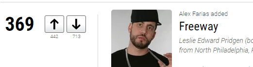 Meanwhile, Freeway is listed at 369 and his entry has a photo of DJ Drama