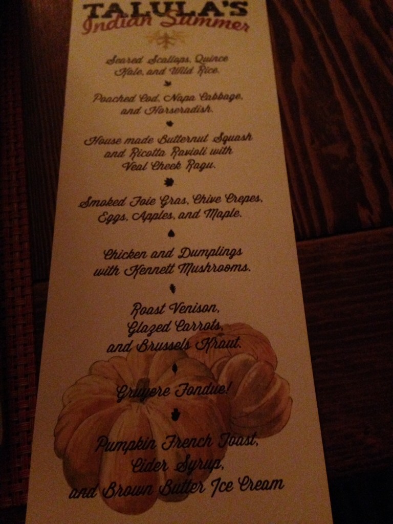In the fall of 2013, I was tooling around online when I decided to take a gander to the Talula’s Table page and see what was up. Across the top of the screen, a banner bar informed visitors that snagging a reservation could only be done via phone first thing in the morning – not in-person, not online – but that every so often a cancelation does open up a slot.