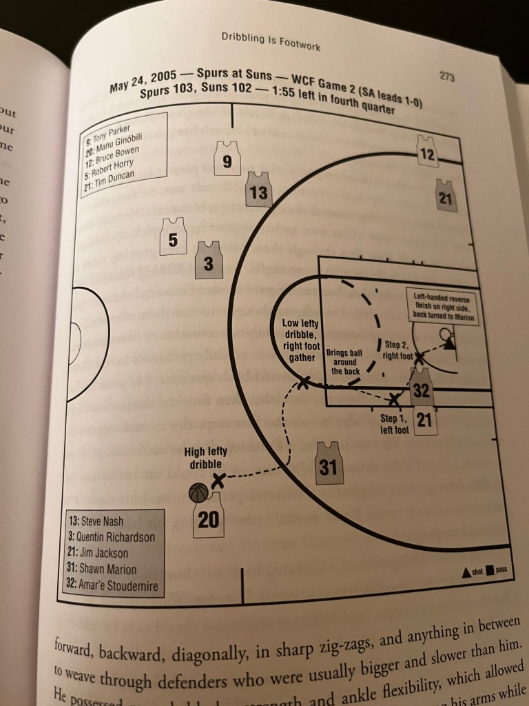 There is focus on Allen Iverson’s (and Tim Hardaway’s) crossover, James Harden’s footwork, and LeBron James’s passing, but also on rule changes, schematic team defense, and the Houston Rockets – Golden State Warriors “holy war” over the best approach to modern offense. There are X-and-O diagrams that any coach can appreciate but also breakout boxes with definitions of shorthand terms that only insiders and superfans would know as well as funny editorial asides that aren’t always about basketball (including footnotes about The Last Jedi and The Matrix sequels).