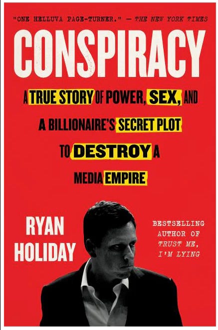A glimpse of that other book can seen in how the paperback version differs from the hardcover. The original subtitle for Conspiracy — Peter Thiel, Hulk Hogan, Gawker, and the Anatomy of Intrigue — is understated. It presents the book as it is — the result of deep thought that gives great consideration to the long-term ramifications of what transpired.